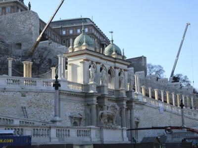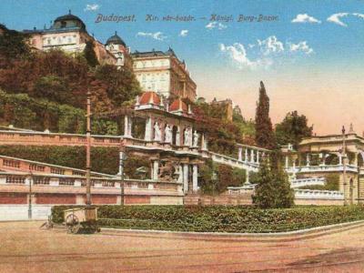 Az együttest délen két, északon egy, a királyi testőrség és szolgaszemélyzet számára készült lakóépület fogta közre. Az épületsor mögötti tájkertben a középtengely vonalában palladio motívumos kerti építmény helyezkedik el. Az épületegyüttes meghatározó motívuma a duna-partról a teraszszintre emelkedő szimmetrikus vezetésű nagyvonalú rámpa-pár.