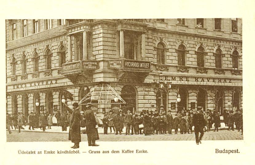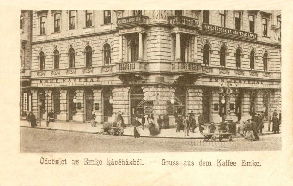 Az EMKE kávéház 1894-ben nyitott meg egy frissen felépült magas bérház földszintjén, amelynek bérleti jogát egy gyakorlott vendéglős, Wassermann Jónás vette meg. Nevét az intézmény az 1885-ben alakult Erdélyi Magyar Közművelődési Egyesületről kapta. Wassermann lelkes tagja volt az egyesületnek, komoly pénzt fizetett a névhasználat jogáért – nem egyedüliként, hiszen EMKE nevű kávéház működött Marosvásárhelyt és Nagyváradon is. A kávéházban igen gazdag könyv, újság és lexikongyűjtemény állt rendelkezésre, azonban ami igazán megkülönböztette a többi hasonló helytől, az a cigányzene volt. Wassermann Jónás ugyanis elsőrangú prímásokat és zenekarokat szerződtetett, és ezt a hagyományt fia, Wassermann Mór is követte, aki apja 1901-ben bekövetkezett halála után vette át a kávéház vezetését. A fiatalabb Wassermann az első világháború után komoly beruházásokba fogott: cukrászdát hozott létre, bárt rendezett be, amely a 20-as években újdonságnak számított magas pultjával és bárszékeivel. A kávéházhoz kötődő hírességek között mindenképpen meg kell említeni József Attilát, aki 1920-ban kenyeresfiúként dolgozott itt. 1945-ben a kávéház teljesen kiégett, ősszel azonban újra megnyitotta kapuit. 1956-ban az épületet ismét rommá lőtték, az EMKE nagyobb kárt szenvedett, mint a II. világháború alatt. A hely öt éven át tartó felújítás után 1961-ben nyitott meg újra, ám akkor már csírájában sem hasonlított a régi kávéházra. Az épületben a rendszerváltás után egy ideig sörbár üzemelt, jelenleg pedig bankfiókok találhatók a legendás EMKE kávéház helyén.