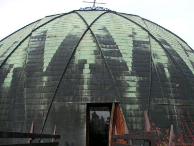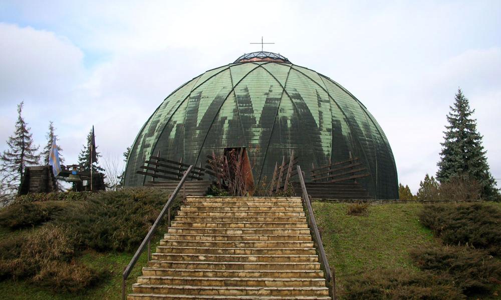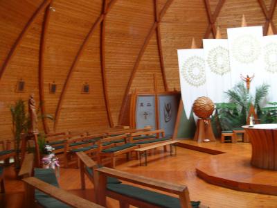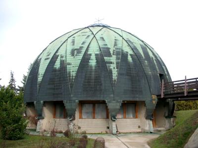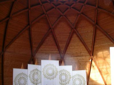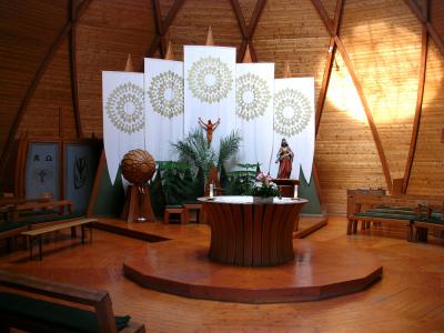 "A halászteleki templom, az ország egyetlen jurta-temploma. Előzőleg csak szűkös miséző hely volt a településen. A hetvenes évek végén kapott az egyházmegye engedélyt az új templom megépítésére, de csak akkora alapterületű lehetett, mint a korábbi miséző helyként is használt paplak. Csete György építész szellemes ötlete volt, hogy ide egy háromszintes "jurtát" kell építeni. Az első szint földbe mélyesztve a plébánia közösségi termeinek ad helyet, a második szint a plébánia - mindez kőből, illetve téglából, kör-alaprajzzal - és a felső szint a félgömb alakú fából készült jurtatemplom, kívül rézlemez borítással. A templom stílszerűen föntről kapja a fényt. A halászteleki templom névadó szobraA hajdani miséző hely egyetlen valamire való művészi alkotása egy szép tiroli Szent Erzsébet szobor volt. A jurta templomnak is ez lett az ékessége, és ezért választották Szent Erzsébetet a templom védőszentjéül..." F: uj.katolikus.hu