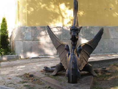 Az öntöttvas sárkányszobor az óbudai Schmidt-kastély (kiscelli kastély, Budapesti Történeti Múzeum) bejáratát őrzi. Akkor került ide, amikor Schmidt Miksa vette meg és alakította kastéllyá, környezetét csodálatos parkká. Korábban Pest legelső kiépített Duna-partszakaszát díszítette. Ez a partszakasz a Lánchídtól északra és délre létesült, a Duna-Gőzhajózási Társaság építtette 1853-58-ban.