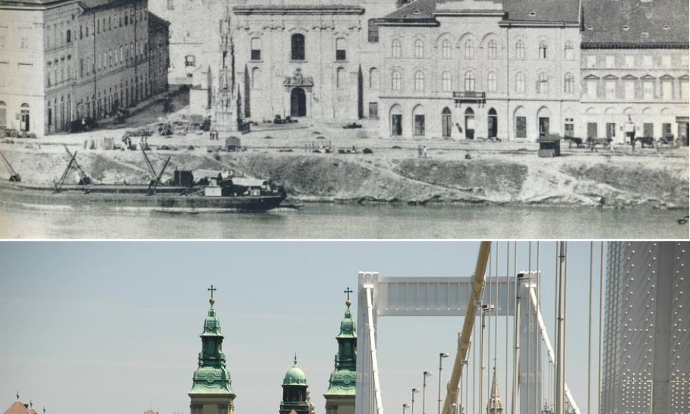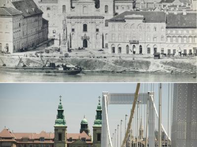 Belvárosi Plébániatemplom, Erzsébet híd akkor és most