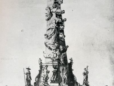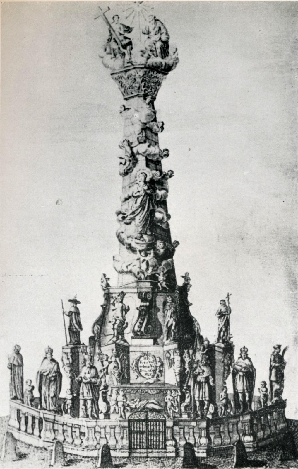 A templom előtti Plébánia  (később Eskü) téren a Szentháromság szobor (már nincs meg).