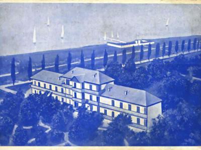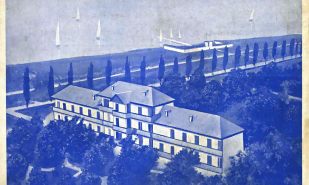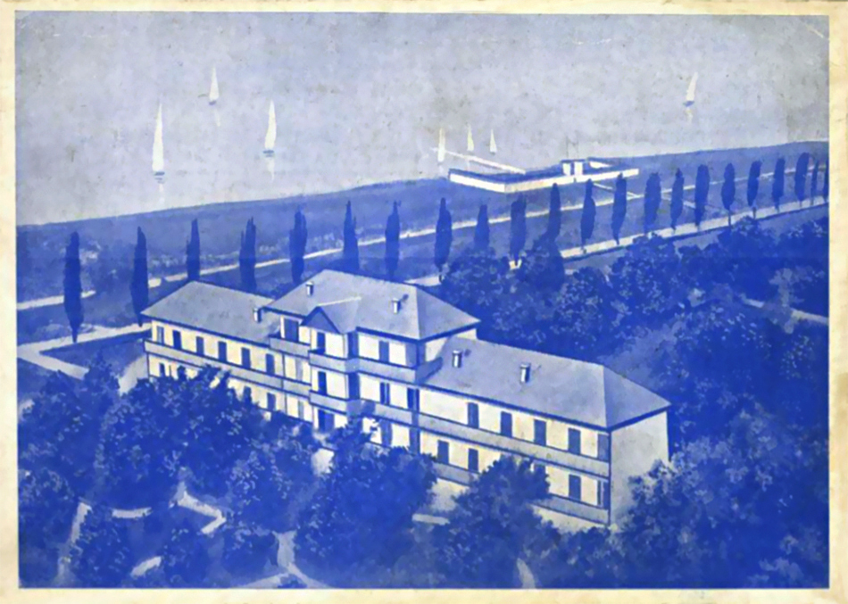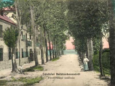 32 kényelmesen berendezett napos szoba. Nagy kerthelyiség. Jazz. Tánc. Szórakozások. Saját gyönyörű strand a szállodánál. Elsőrendű ellátás. Polgári árak. Napi teljes penzió lakással, stranddal P 6.—