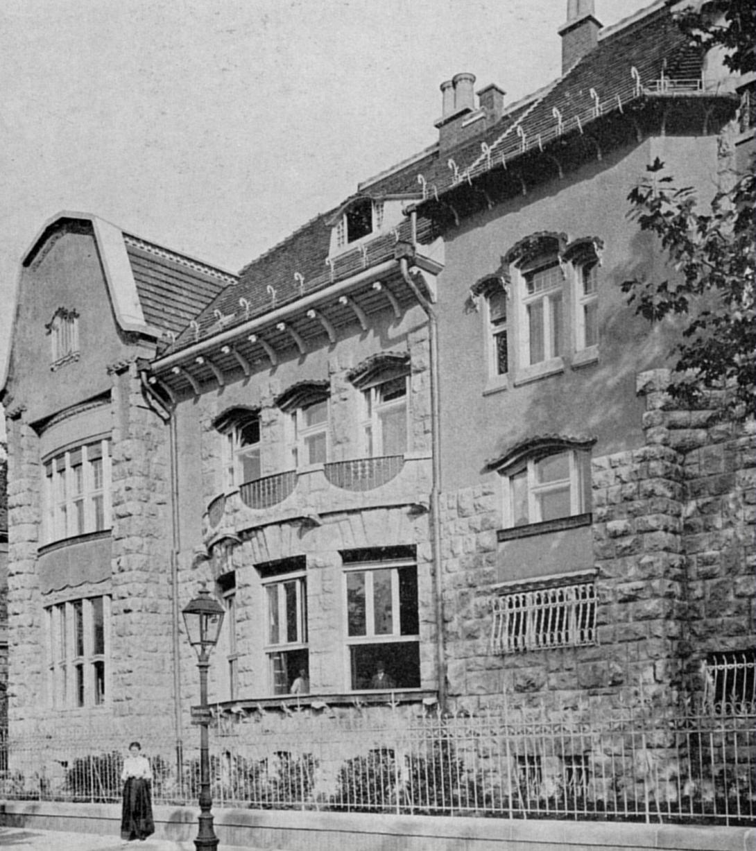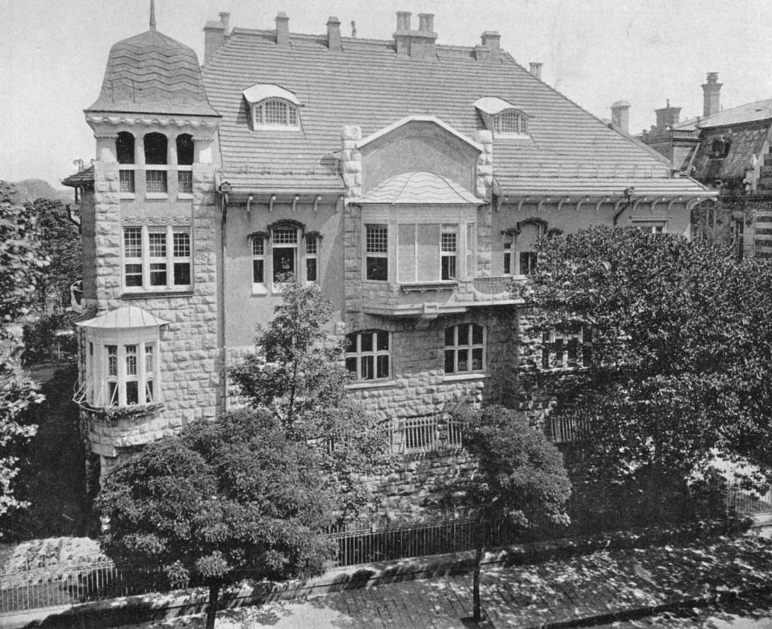 Schanzer Ignác, a szolnoki "fakirály" (akinek fűrészüzemében a Felvidékről a Tiszán leúsztatott farönköket dolgozták fel) 1907-08-ban építtette az Andrássy út és  Bajza utca sarkán szecessziós villáját. Tervezője Spiegel Frigyes (1866-1933) a magyar szecesszió kiemelkedő alakja, aki jelentős alkotó volt az iparművészet, bútortervezés terén is, a villa teljes berendezése is az ő munkája volt. (A ház helyén korábban a Feszl Frigyes által tervezett, 1882-83-ban épült Bányász villa állt, amit 1906-ban bontottak le úgy, hogy még fénykép sem maradt róla. Az Andrássy út itt a Bajza utcánál vált át a zárt sorú beépítésről a kertes villanegyedbe.)