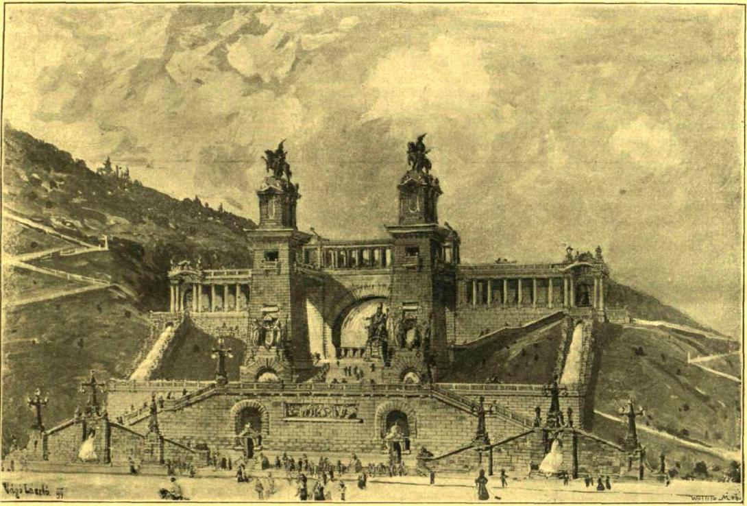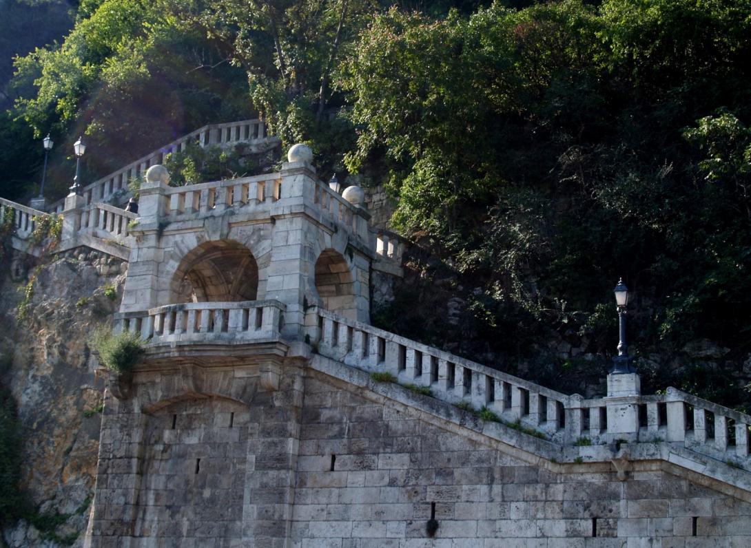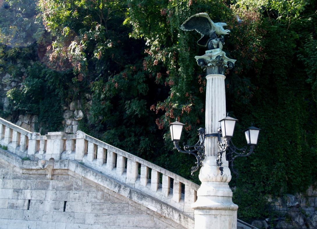 A szegélyező kerítés dinamikus oszlopsorával, a belefoglalt pavilonnal, lépcsőzettel, kapukkal szervesen kapcsolódik  egyrészt az 1904-ben felállított Szent Gellért szoborhoz (a főalak Jankovits Gyula,  a mellékalak Gárdos Aladár alkotása), másrészt  az  1934-ben felépült neoromán stílusú pálos kolostorhoz.  A pálosok a hegy déli felében lévő barlangban (amely korábban egy beleépített háznak is helyet adott)  1931-ben  Lux Kálmán tervei alapján és Weichinger Károly kivitelezésében létesített Sziklatemplomban teljesítettek szolgálatot. (A Sziklatemplomot a már 1924-ben létesített Sziklakápolna barlangjának mesterséges bővítésével hozták létre, összeköttetést is teremtve a kolostorral.)