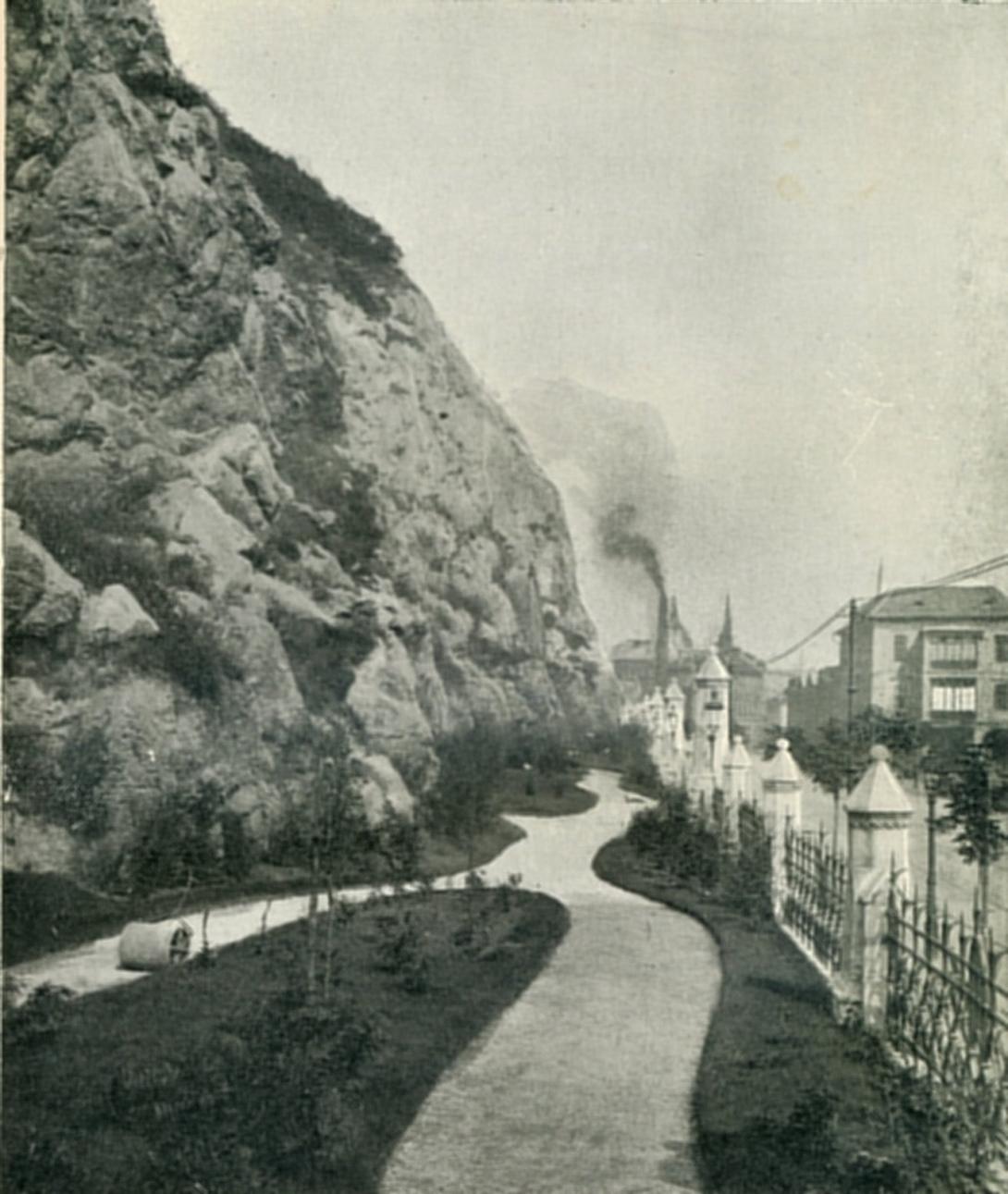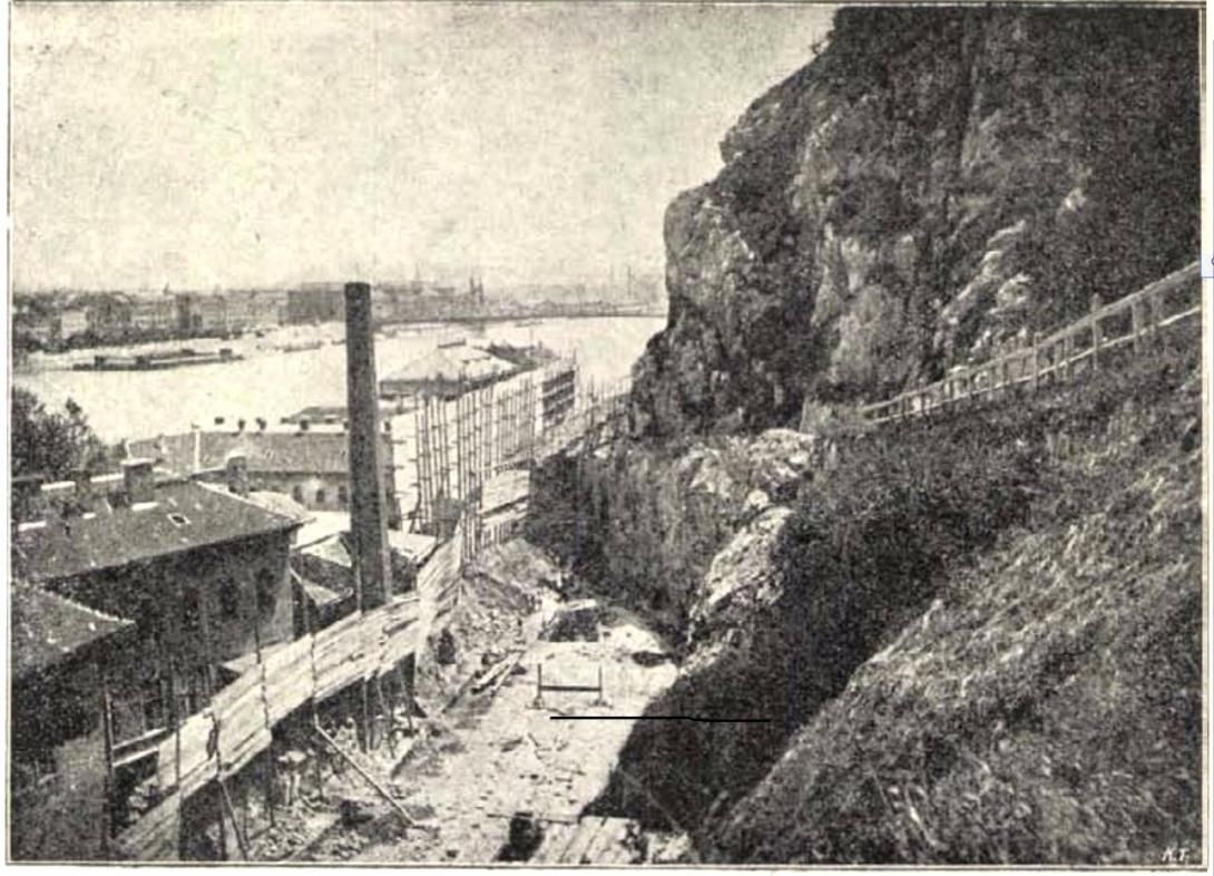 A Gellérthegy keleti oldalának meredek fala és a Duna közötti, eredetileg is keskeny sávot még inkább szűkítette  a Gellért rakpart (korábban Untere Donau Zeile,  Alsó Duna sor)  közvetlenül a sziklák tövébe  települt házsorának 40-45 háza. Az 1890-es évek végétől a kiépített villamosvágány további terhelést jelentett. Ráadásul mind a házakat, mind a keskeny út forgalmát veszélyeztették a meredek sziklafalakról leomló kőtömbök.