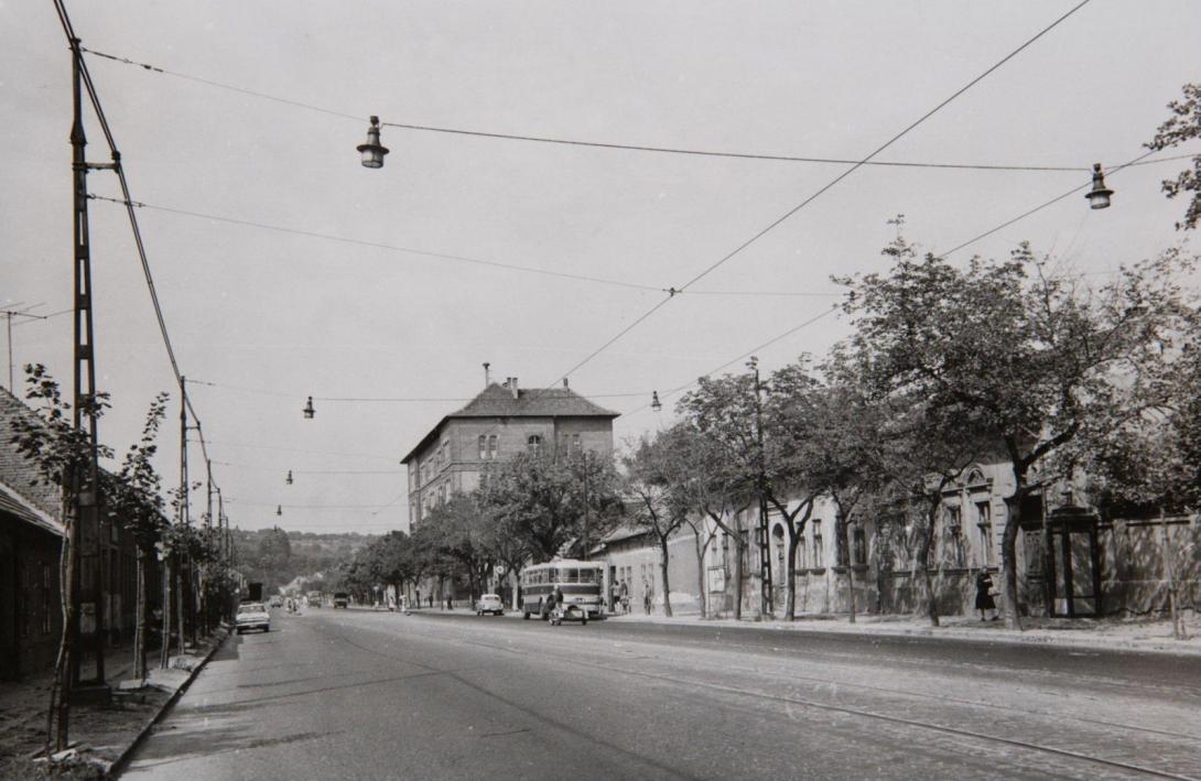 A négy és fél évtizedes különbséggel készült két kép jól mutatja az iskola környezetének változását: a földszintes házak helyébe panelek emelkedtek, a Vörösvári út jelentősen kiszélesedett (a korábbi kép baloldalán a járdaszegély, ahol most az út közepén lévő villamosmegálló széle).